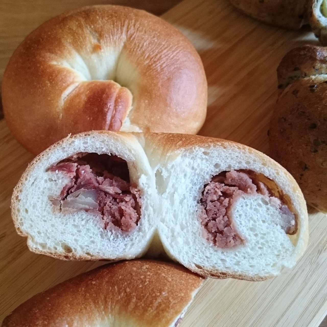 プレーン生地のベーグルに栗をたくさん入れました。